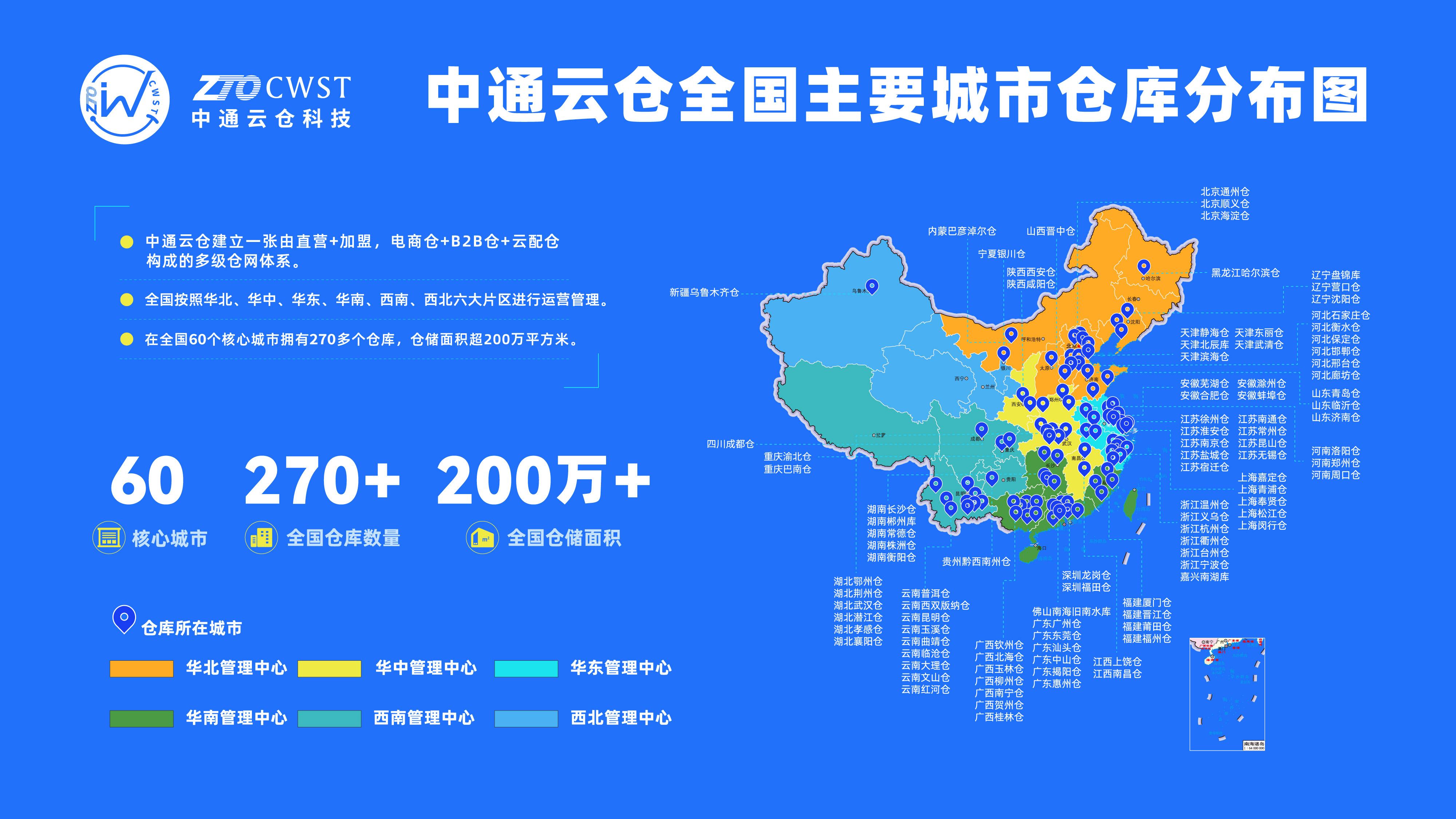 中通云倉(cāng)科技全國(guó)主要城市倉(cāng)庫(kù)分布圖